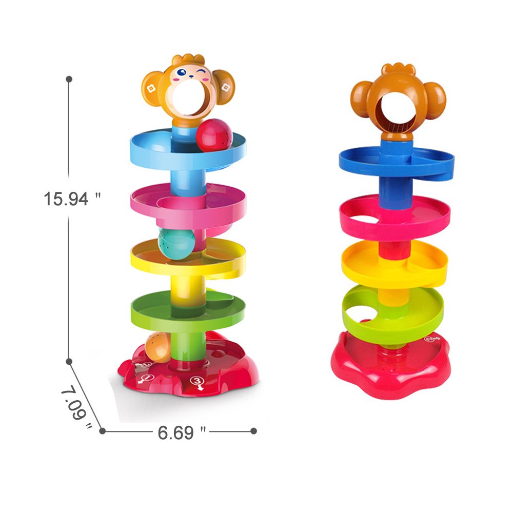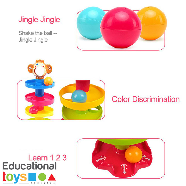 - Start by simply placing the ball in the top hole and watch them fall and roll through each tier.